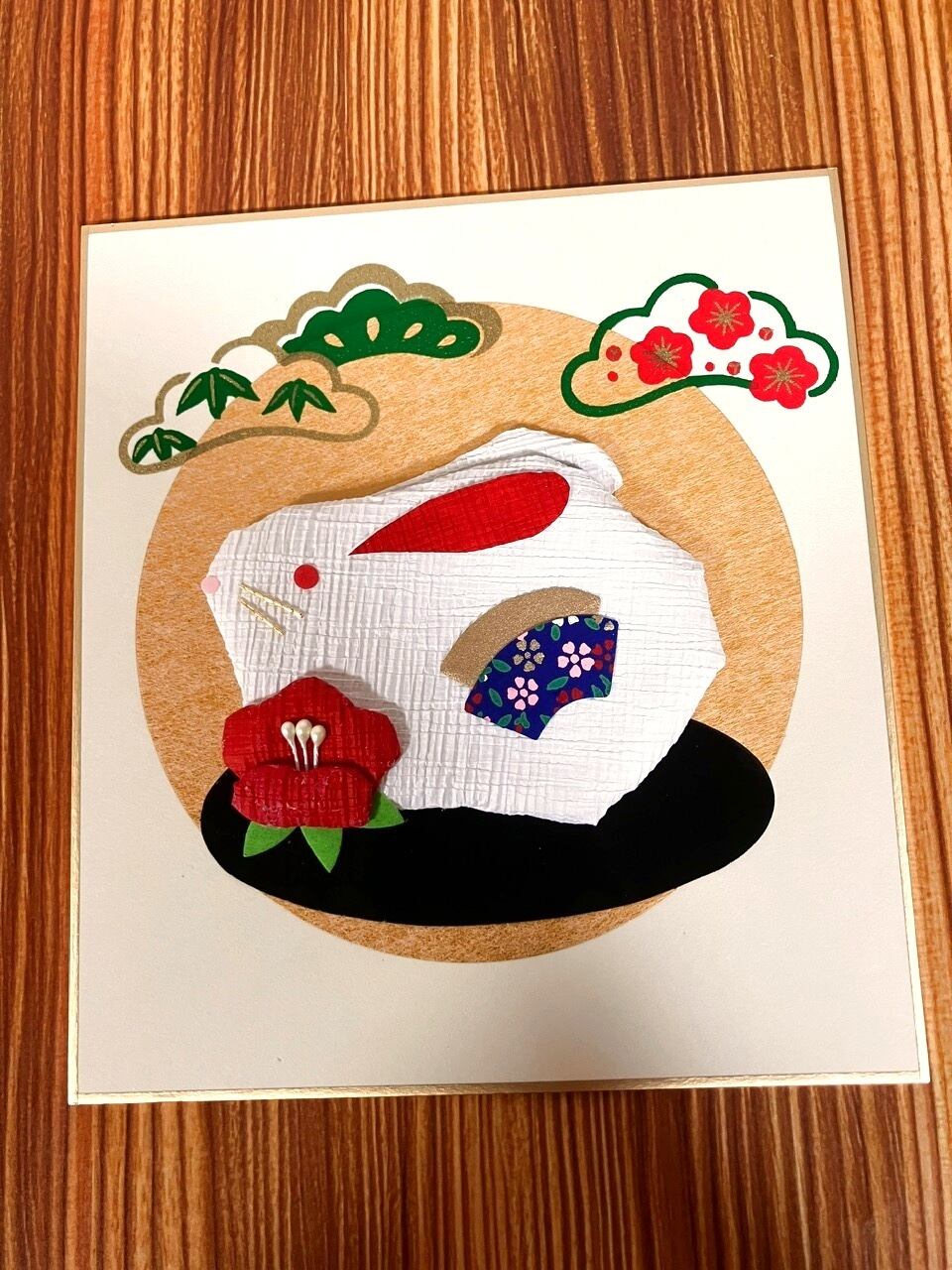 【縁起物】卯(うさぎ)押絵色紙◆和風お正月飾り◆ハンドメイド