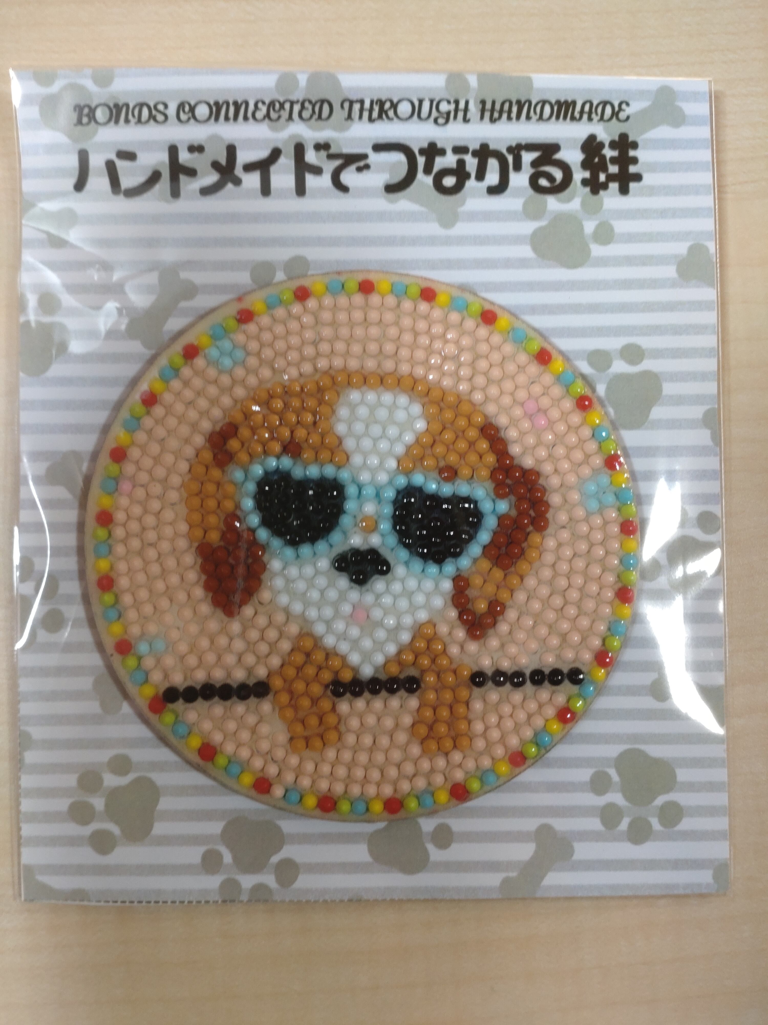 ■【ハンドメイド】キラキラ輝く♪ わんちゃんのビーズ刺繍風インテリア【完成品】